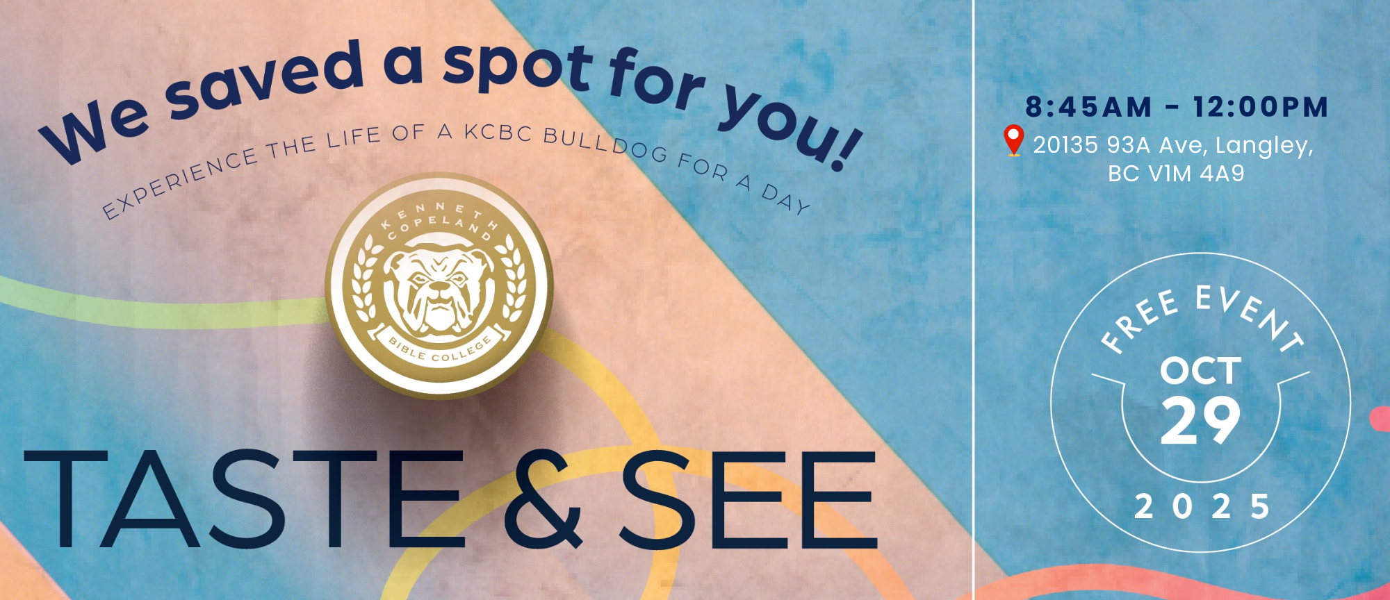 Our campus is at Kenneth Copeland Ministries Canada in Langley, British Columbia. Classes will be held Monday through Friday, from 8 am to noon.